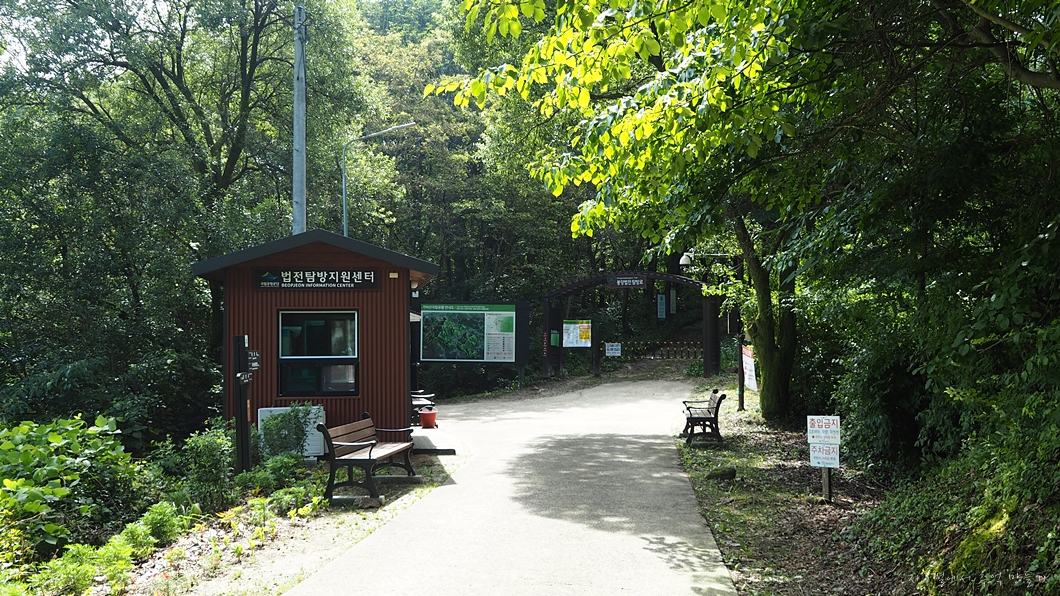 도로에서 백전탐방센터로 들어가는 입구.