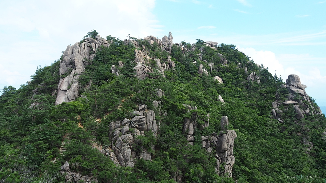 상왕봉과 칠불봉 중간쯤에 오르게 되는데 우측 상왕봉이 더 가깝습니다.