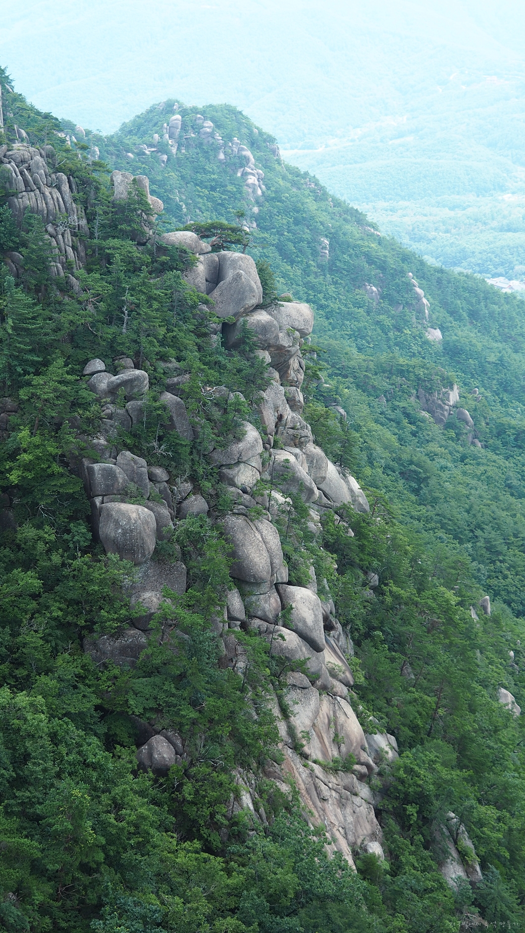 겨우 한 곳에서 이 정도 조망이 트이는 것이 이 구간의 전부입니다.
