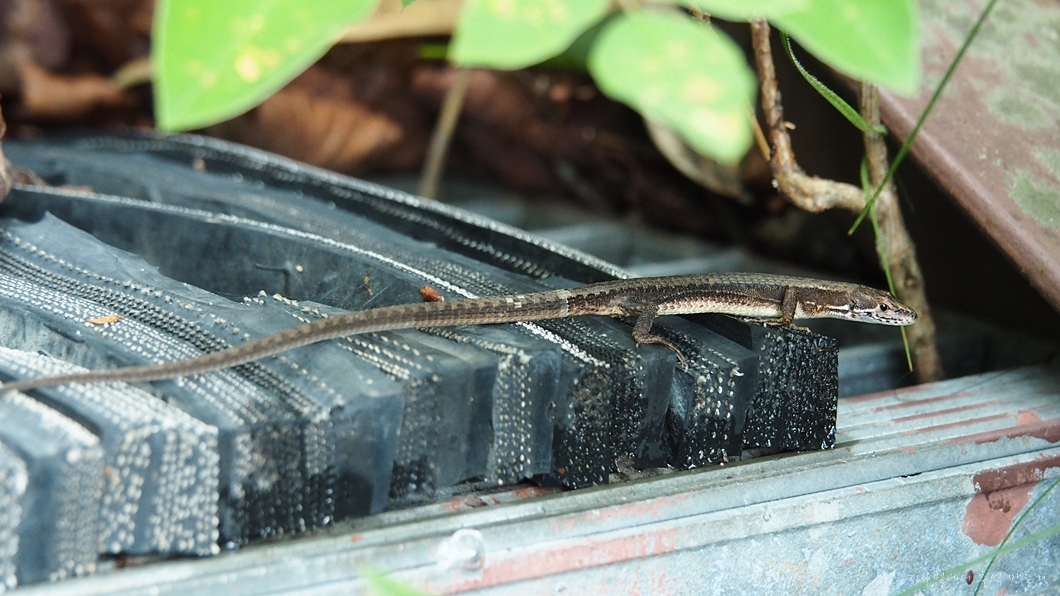 계단길에서 달아나지 않고 맞짱 뜨자는 도마뱀 칭구.