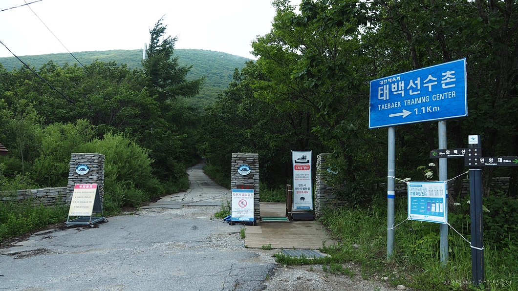 만항재에서 함백산으로 이어지는 등산로는 만항재 정상에서 조금 내려와 마련된 주차장에서 시작을 하는데 그곳을 지나쳐 다시 차를 몰고 태백선수촌으로 가다 보면 함백산 코 앞에 도착합니다.