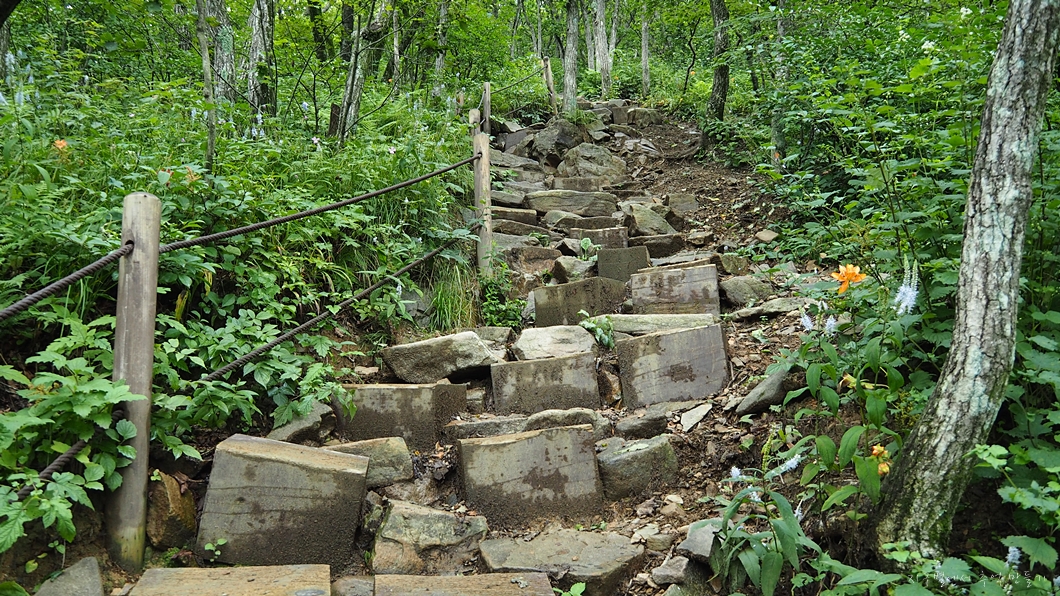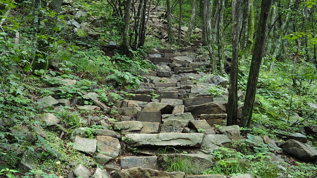 이후 가파른 돌계단이 정상까지 이어지는데..