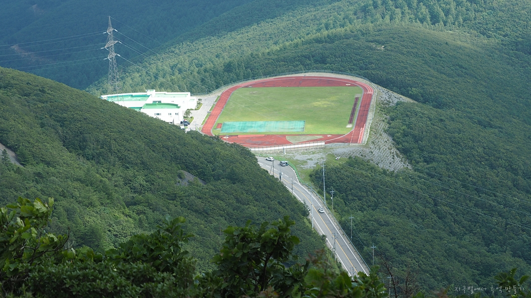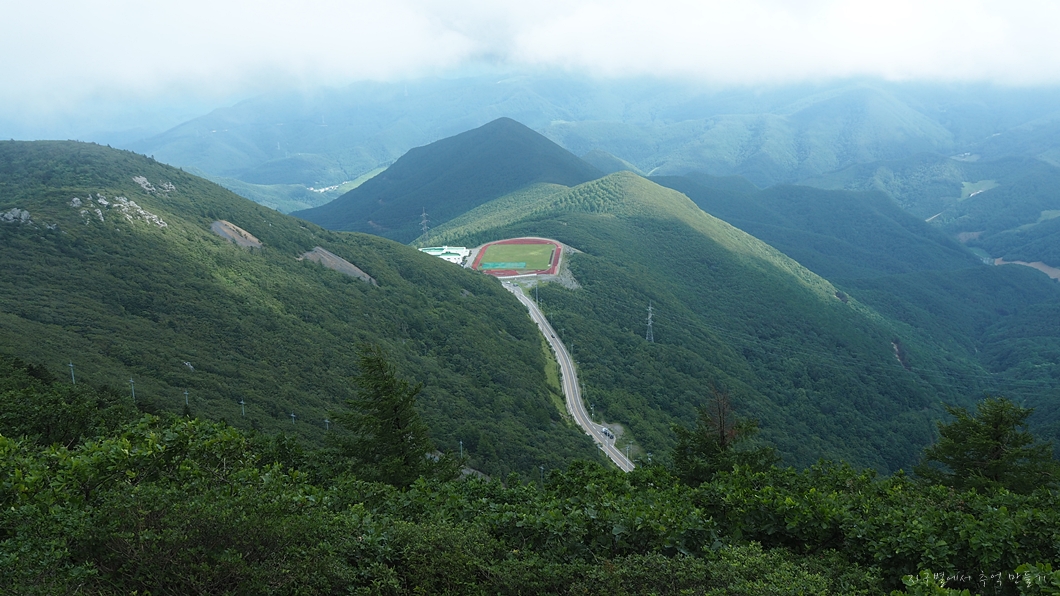 바로 아래 오투스키장이 보이고 멀리 매봉산 바람의 언덕도 보이네요.