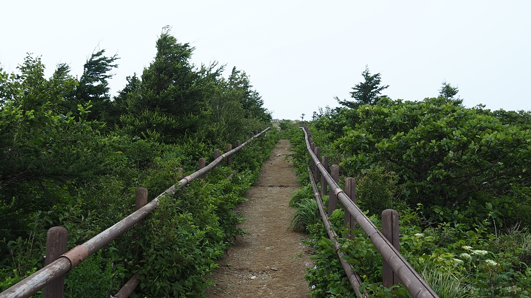 만항재에서 오르면 1시간 반 정도 걸리지만 조금 더 차를 몰고 가서 등산로 입구에서 시작하면 산 정상까지의 거리는 딱 1km.