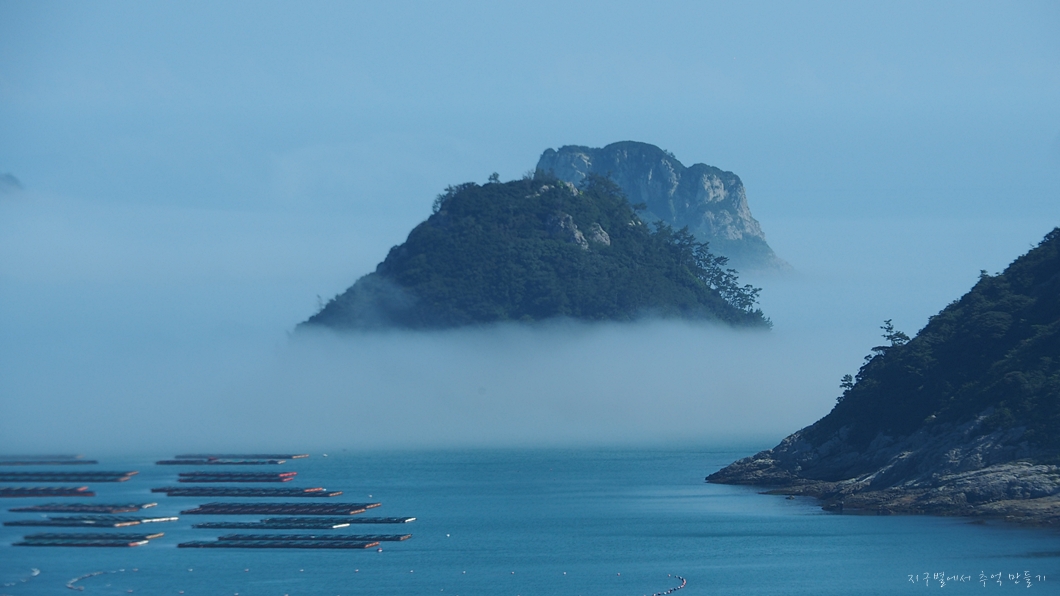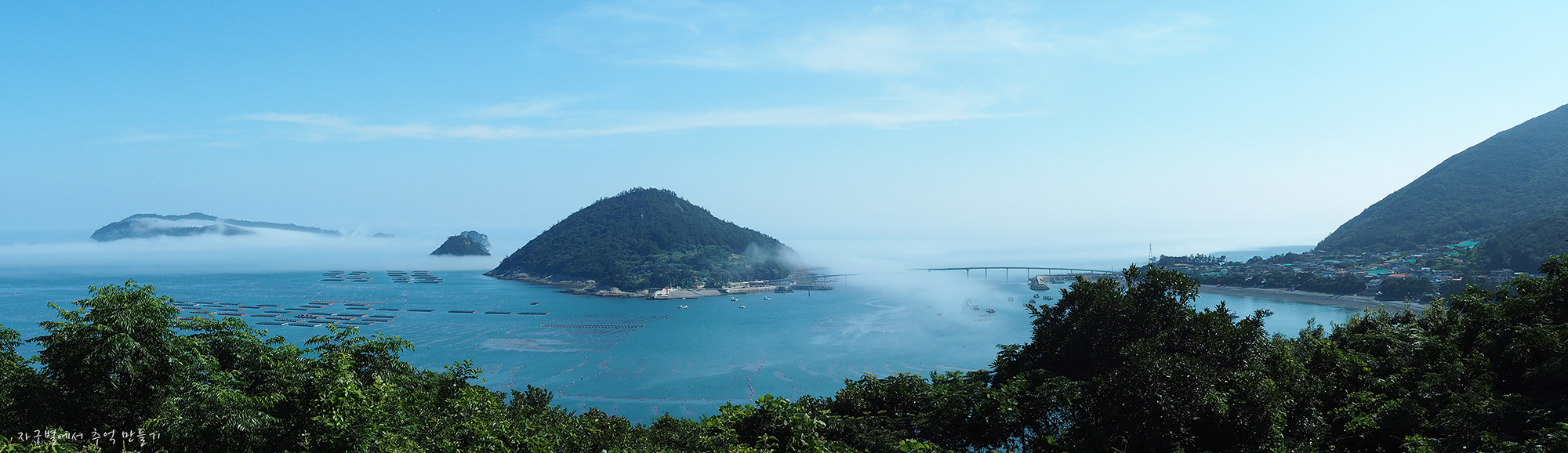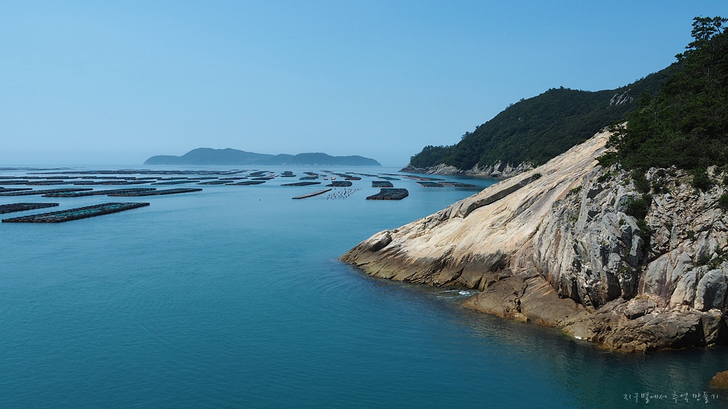 앞쪽 바위가 솟은 곳은 기도라는 섬.
