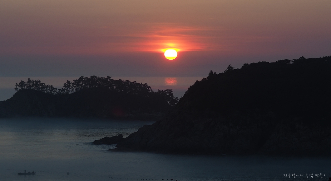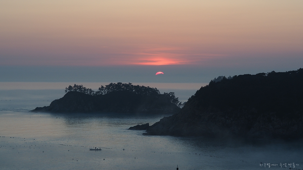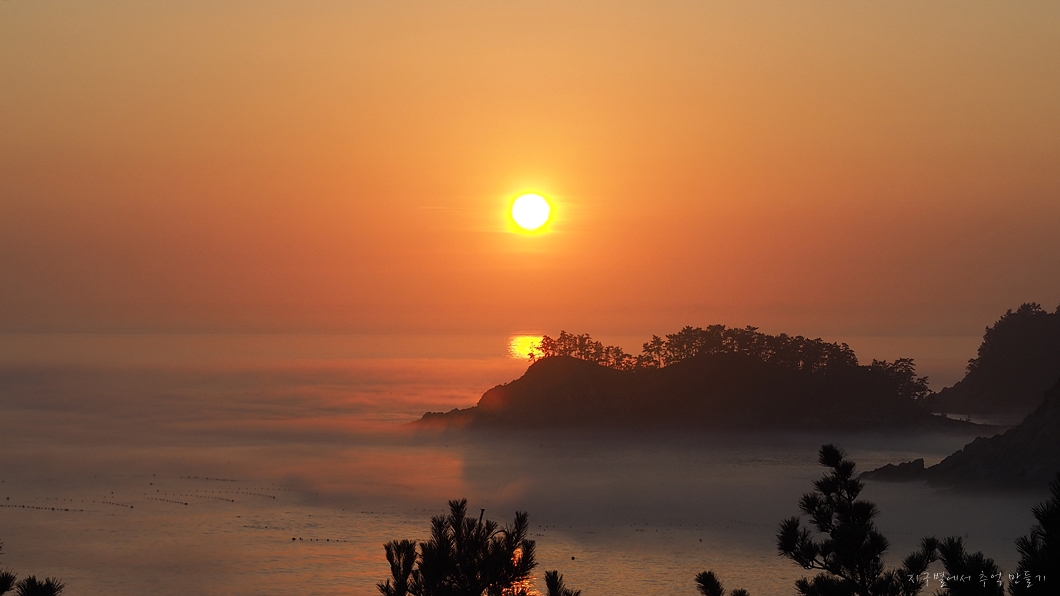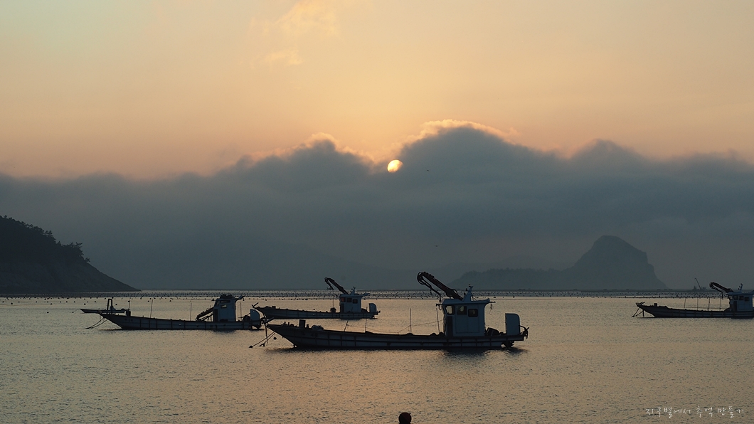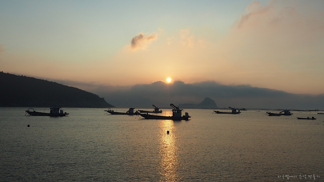 5시 40분에 멋진 일출을 예상했는데 역시 해무로 한참이나 지난 후 해가 구름 위로 방긋합니다.