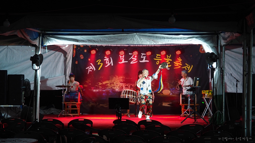 각설이마당에는 의지가 수십 개와 술자리 테이블이 마련되어 있는데 관람객이 아무도 없지만 무대에서는 최선(?)을 다해 노래를 부르고 있고..