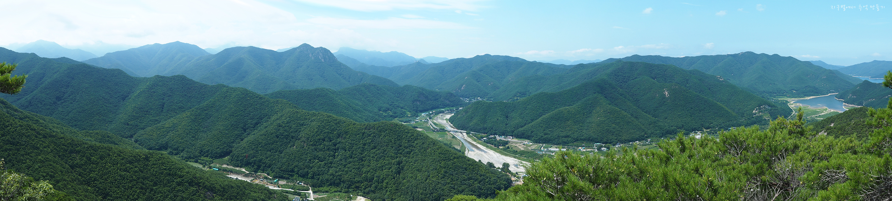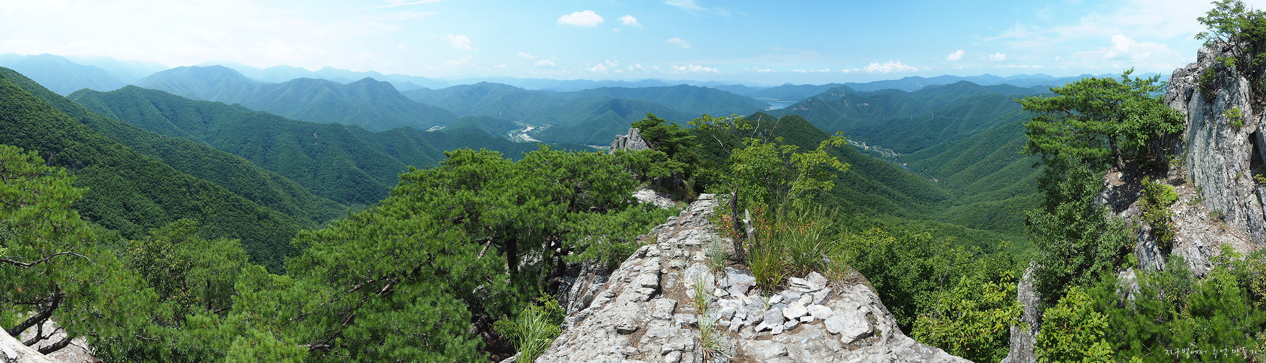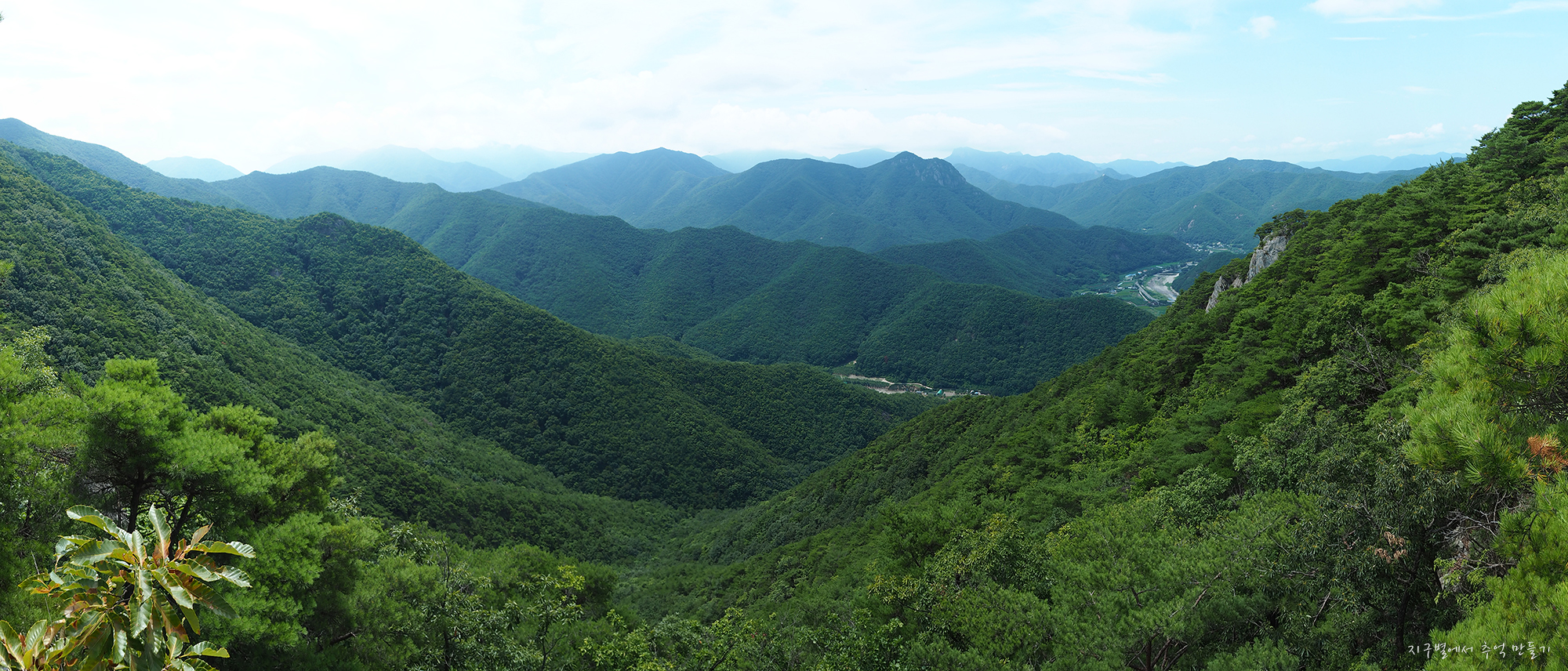 올라온 능선을 가운데 두고 보는 파노라마 조망.