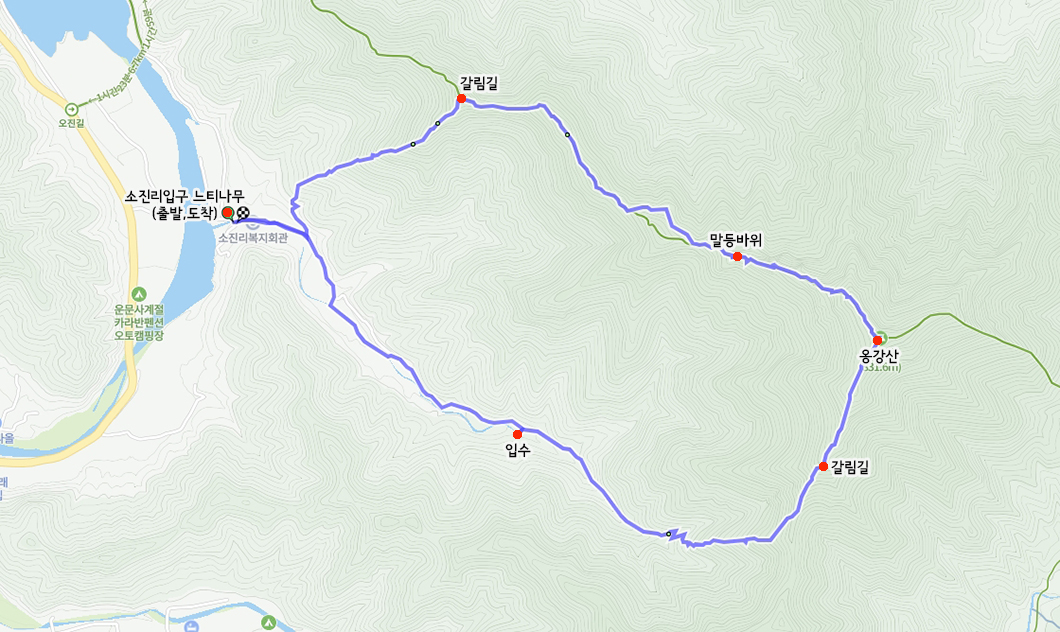 산행 코스 : 소진마을 - 말등바위 - 정상 - 소진마을 (원점회귀)