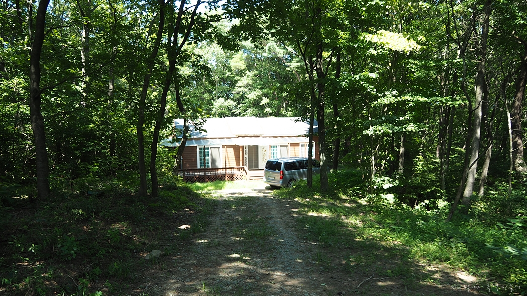 임도를 따르다가 우측으로 내려가는 길이 있길래 한참 내려가니.. 별장.
