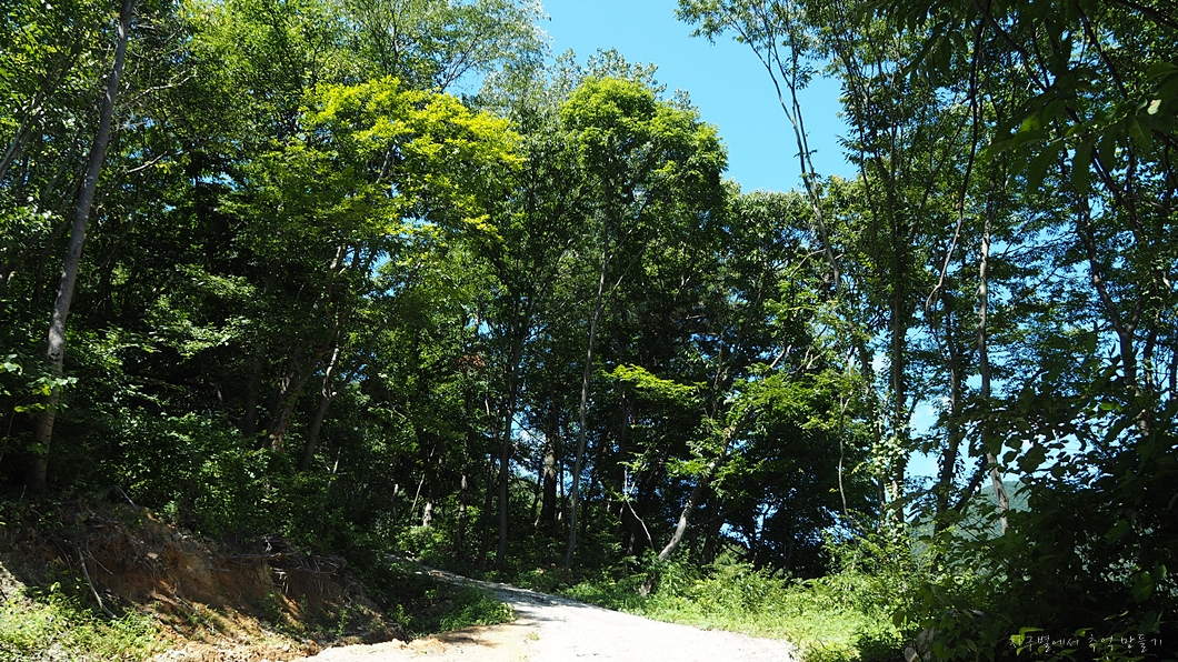 밀림 같은 숲길을 헤치고 나오는데 갑자기 앞이 밝아지는데 훤한 임도가 나타났네요.
