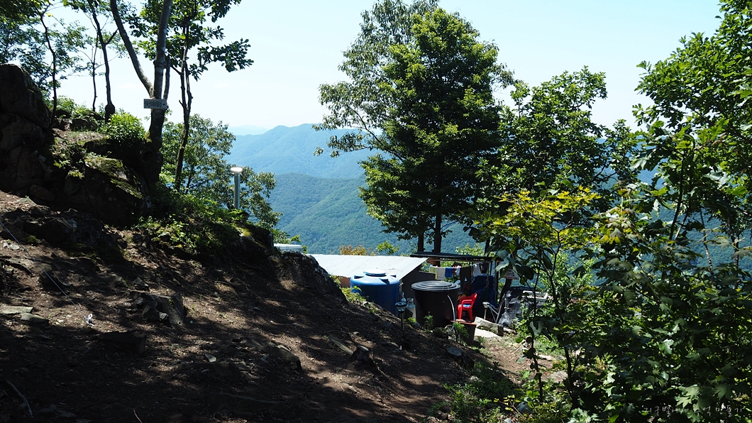 다시 올라가려다가 마침 이곳에 와 있는 분이 있길래 이곳에서 곧장 내려가는 길이 없냐고 하니 없다고 등산로는 없는데 내려갈 수는 있다고 하네요.