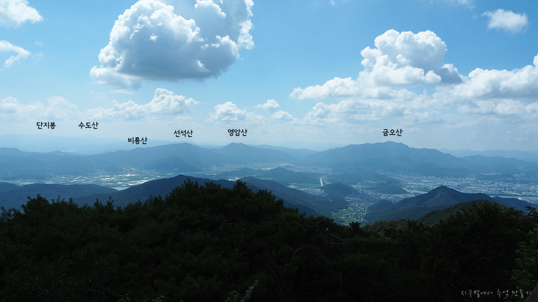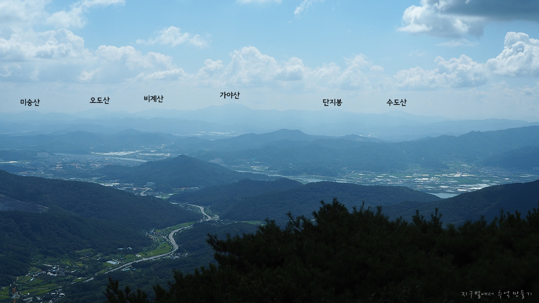 북쪽으로는 멀리 이산 저산 모조리 보이지만 거리가 멀어 산 지명을 구분하기에는 쉽지 않네요.