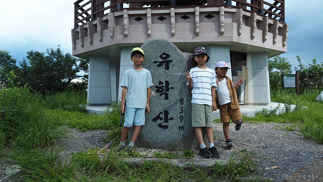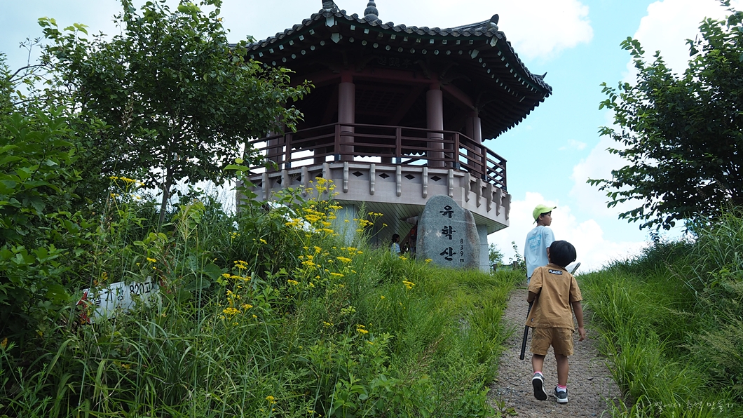 정상에는 유학정이란 2층짜리 정자가 있어 아이들과 푹 쉬다가 내려왔고요.