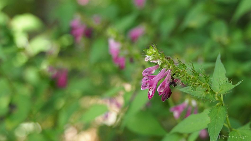 쉼터 벤치에 앉아 쉬는 동안에 며느리밥풀꽃에 대하여 재미있게 설명을 해 주었더니 막내가 관심 폭발입니다.