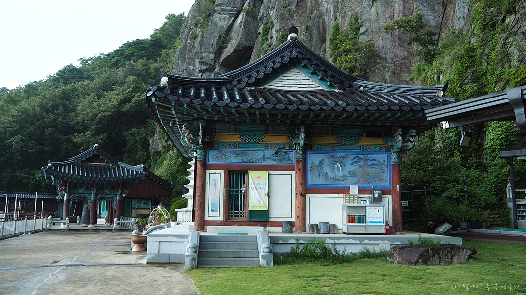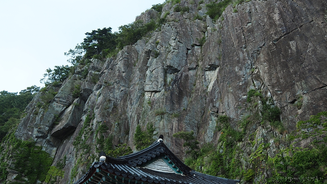 절 뒤에는 학만 놀 수 있는 절벽이 우람합니다.