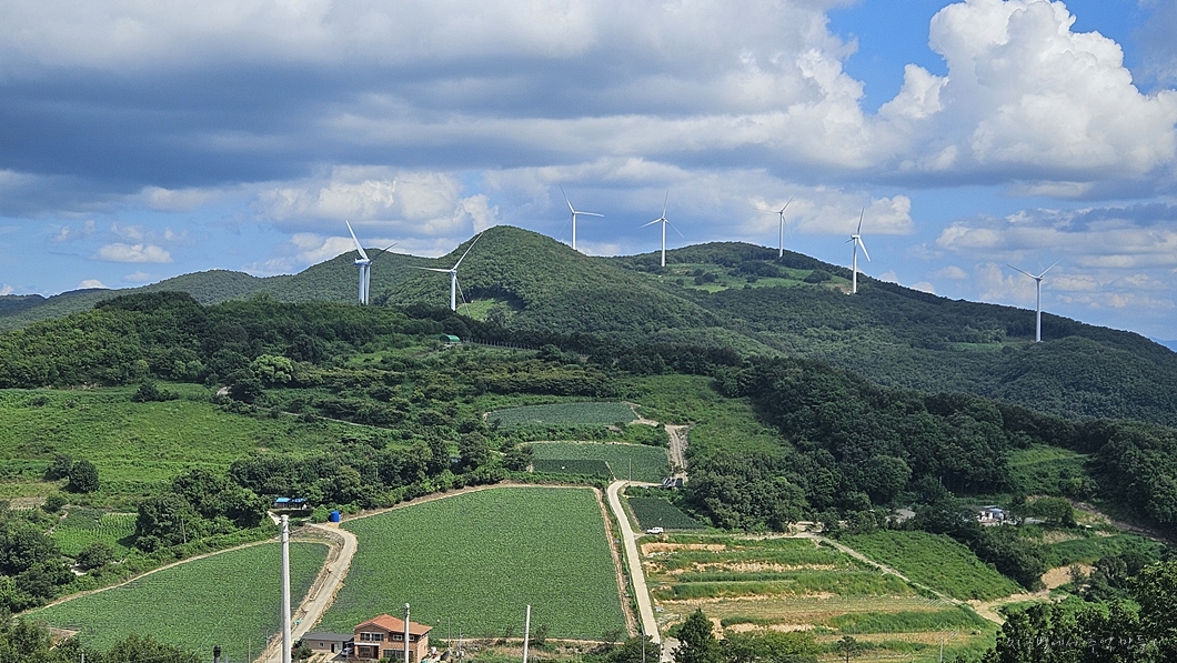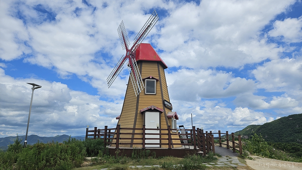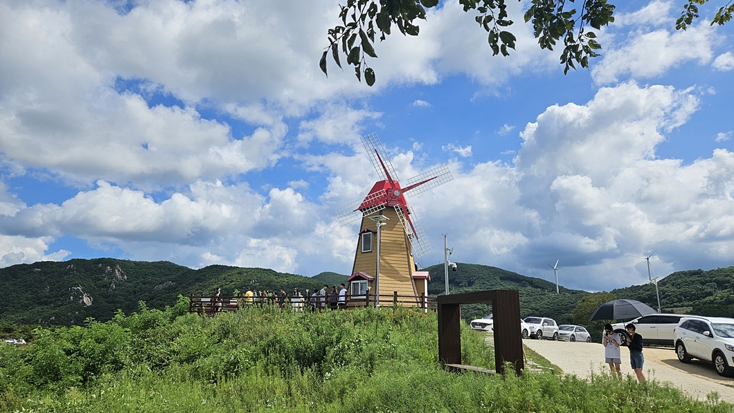 풍차전망대의 빨간 지붕이 돋보입니다.