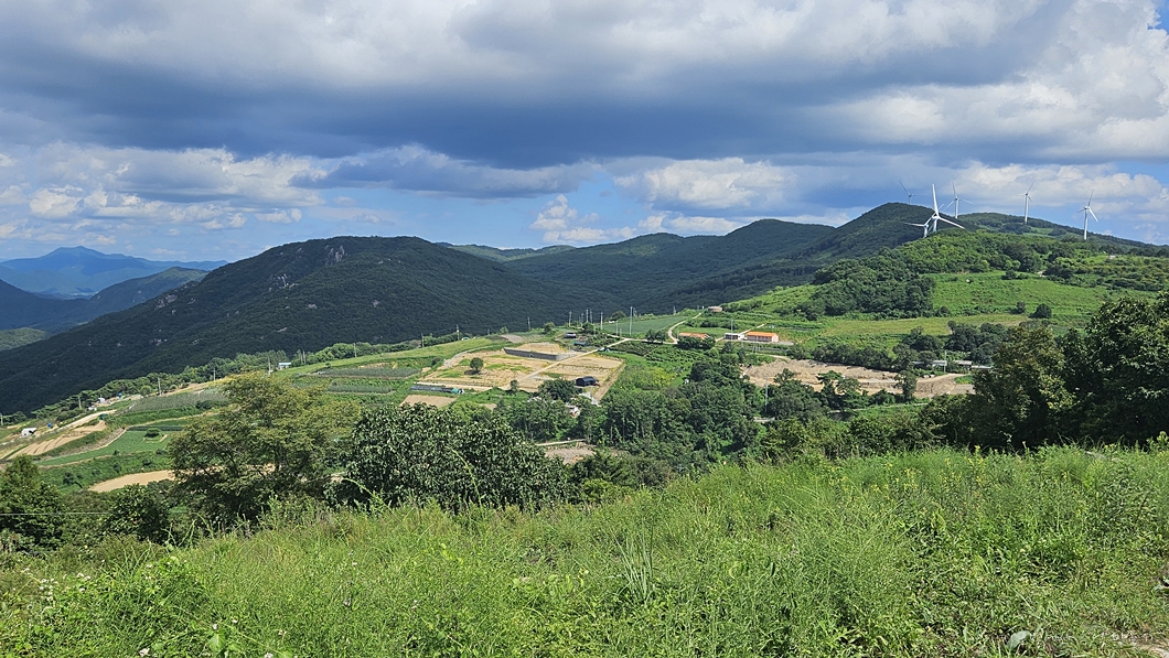 우측 멀리 보현산과 기룡산이 솟아올라 보입니다.