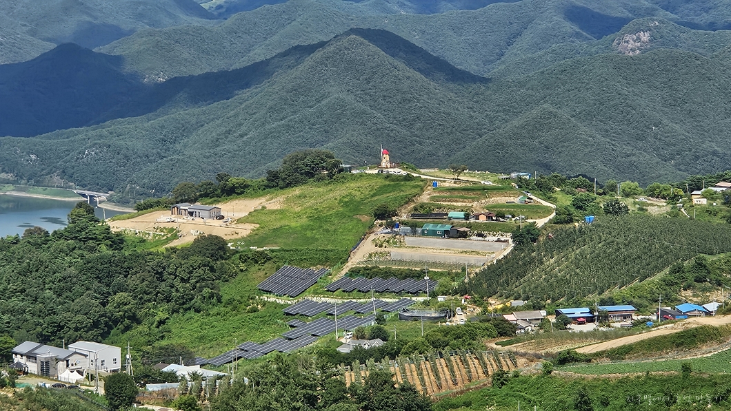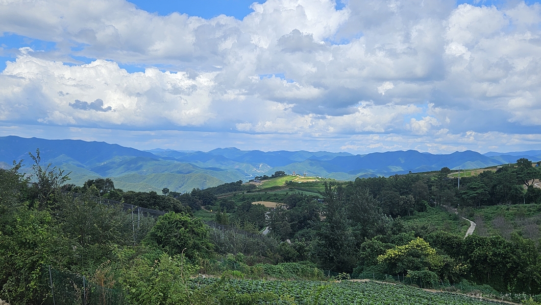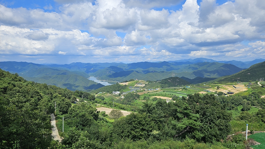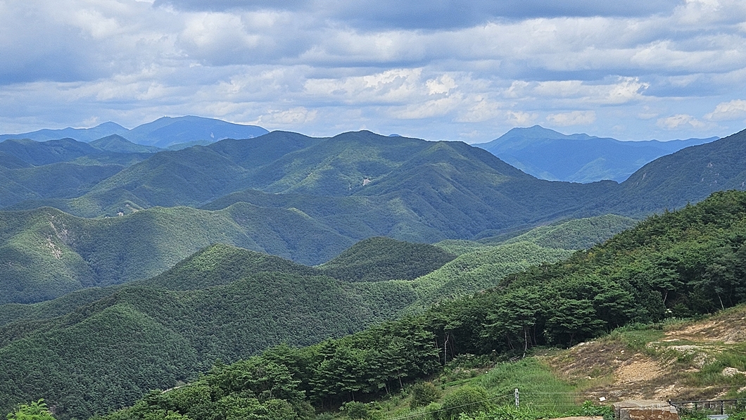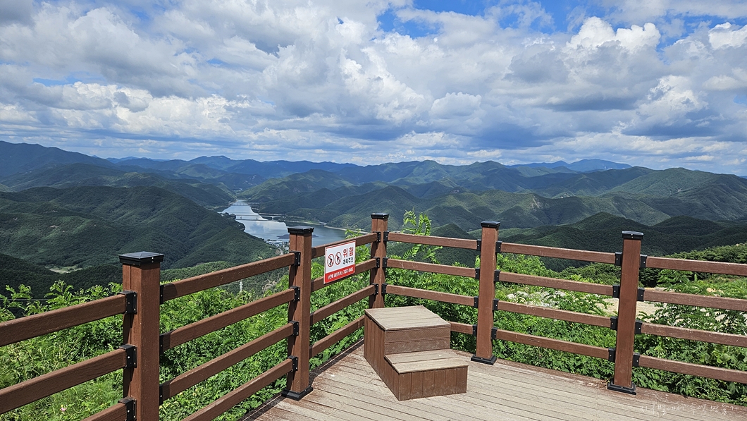 좌측이 각시산(옥녀봉)이고 우측으로 보현산이 멀리 보이네요.
