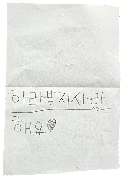 받침을 아직 배우지 못해 온전한 문체도 아니고 갱상도식 문법이라 매끄러움은 덜하지만 나는 이 편지를 세상에서 가장 달콤한 연서(戀書)로 받아들인다.
