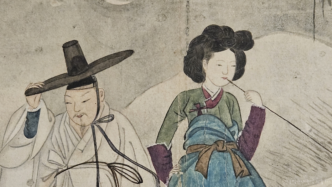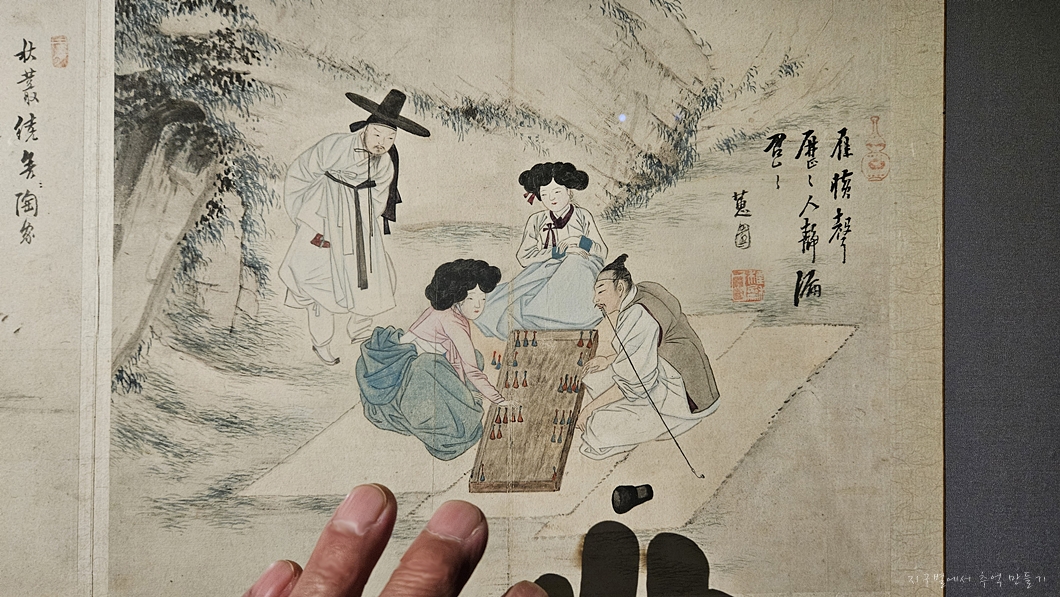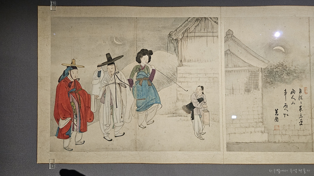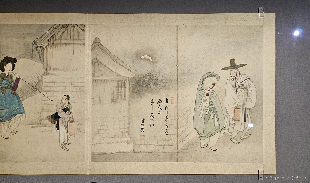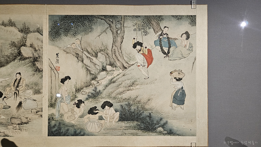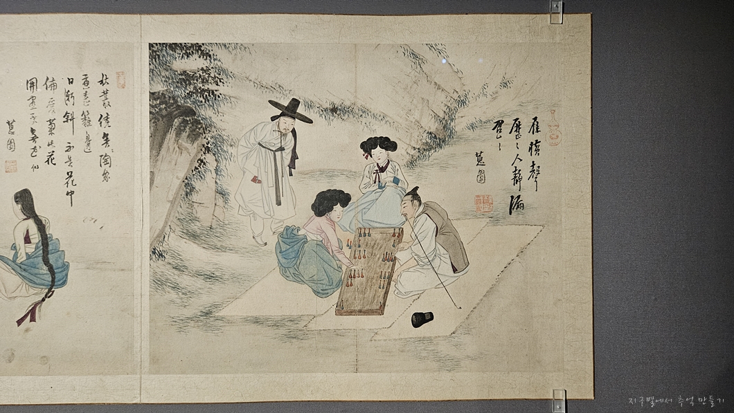 여러 장의 그림으로 되어 있는 풍속도인데 채색이 되어있고 교과서나 옛 그림에서 자주 보는 것이라 눈여겨보게 되네요.