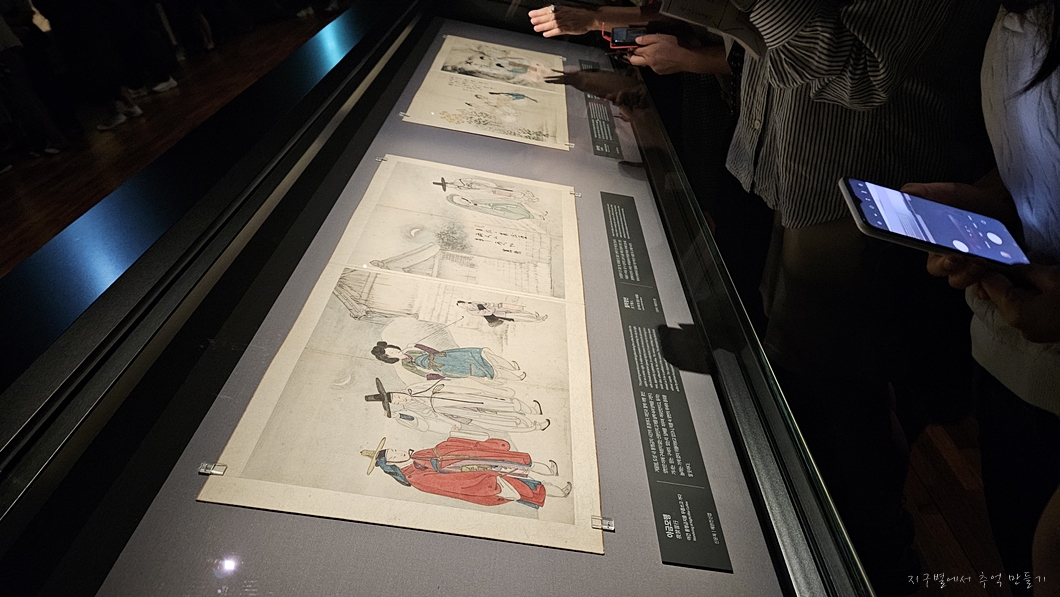 그때도 신윤복의 미인도를 보긴 했지만 앞쪽에 가까이 접근을 할 수 없었는데 이번에는 코 앞에서 가까이 볼 수 있었습니다.