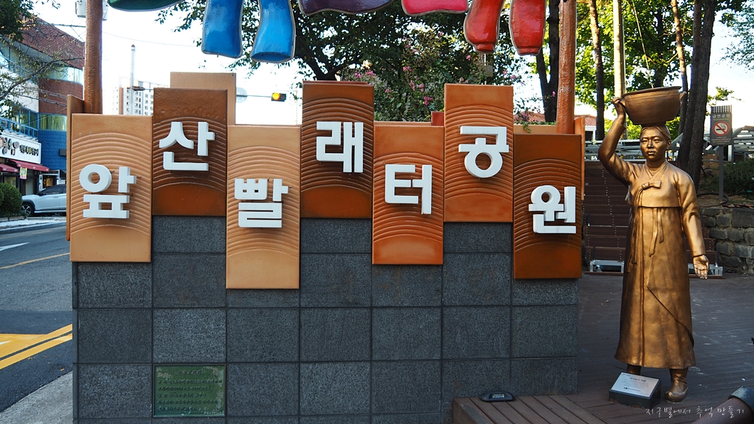 빨래터공원이 있다고 하여 빨래 짜는 모습을 형상화했다고 하는데 그릇타카이 그릉갑따 생각이 드네유.
