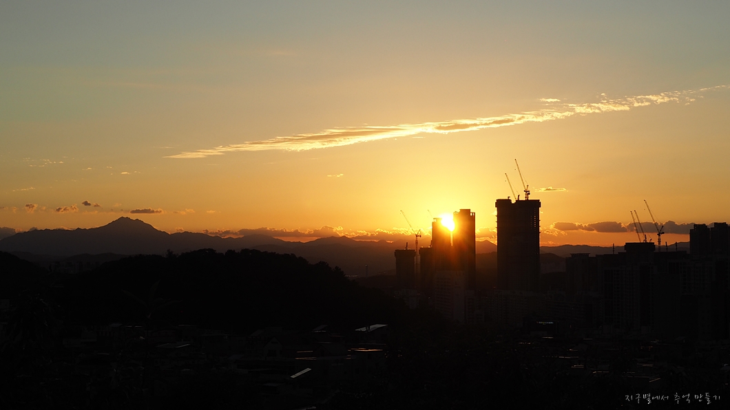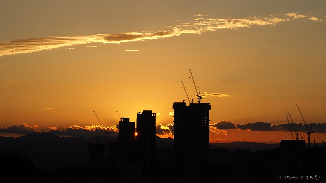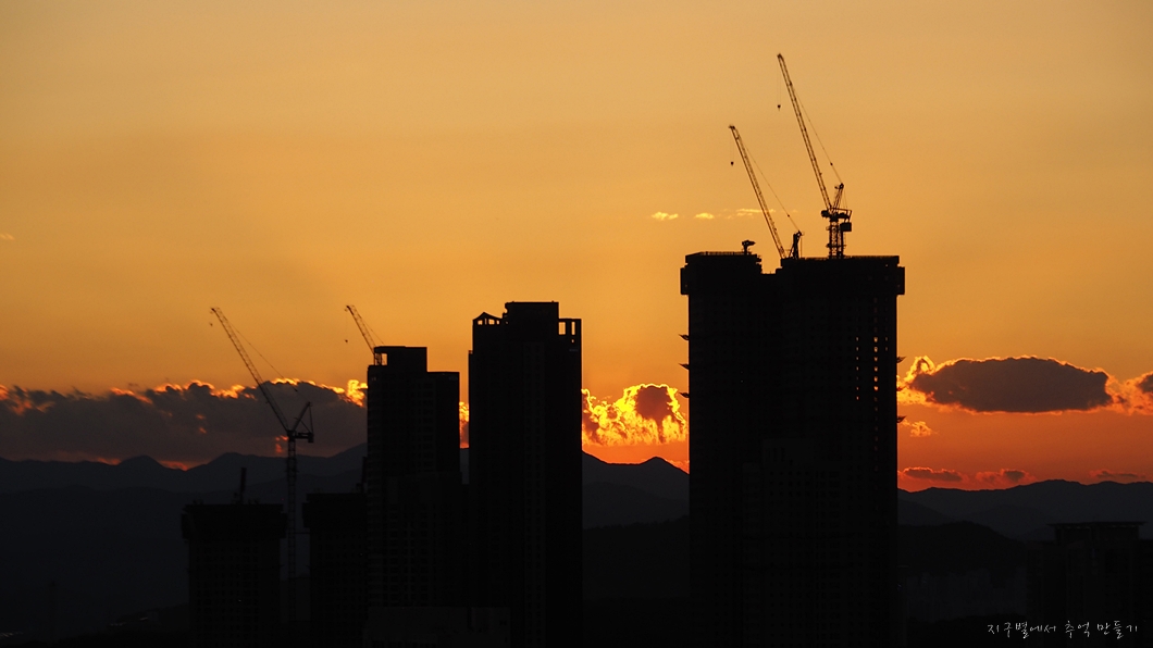 짓고 있는 아파트가 해를 가리지만 그것 또한 색다른 풍경으로 그려지네요.