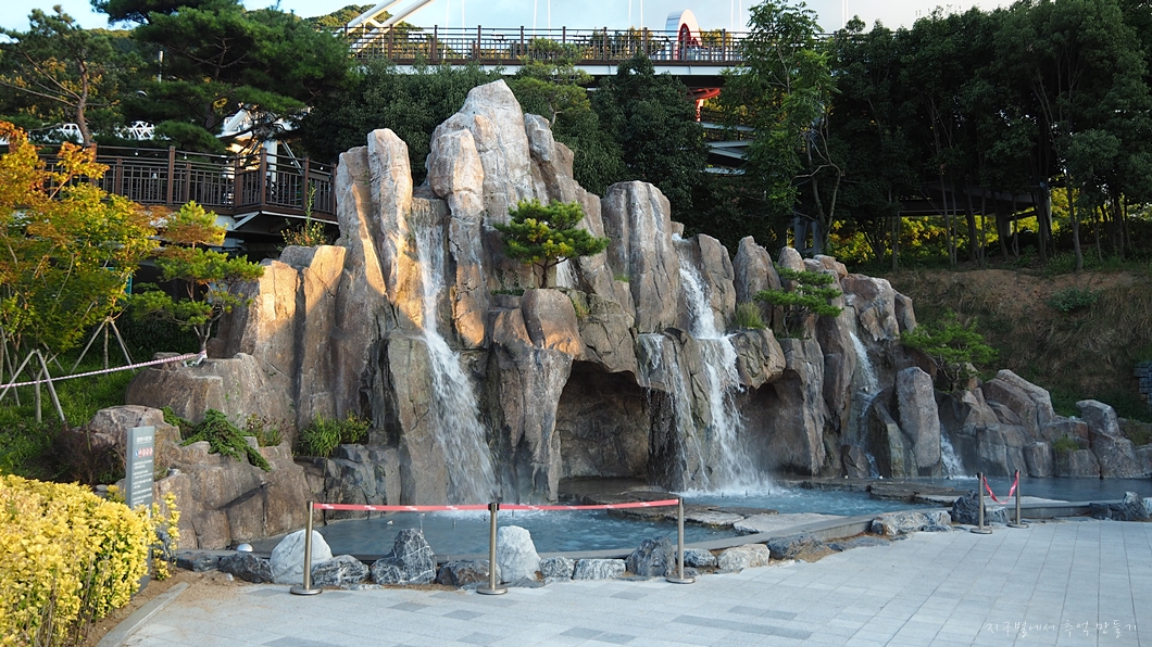 한여름에는 물이 흘러내리고 물을 가늘게 분사를 시켜 시원하게 만들어 주더니 오늘은 그런 장치는 없고 물도 흘러내리지 않네요.