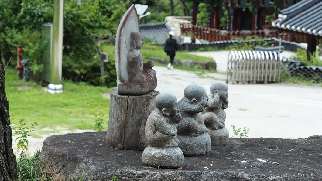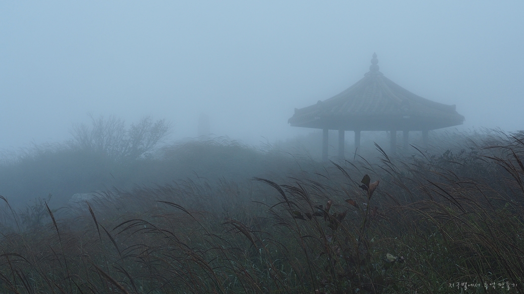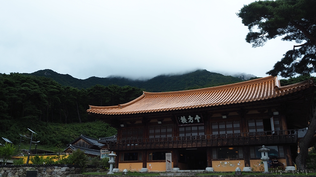 대웅전 뒤로 정상의 덤이 보여야 하는데 구름으로 가려져 아무것도 보이지 않네요.