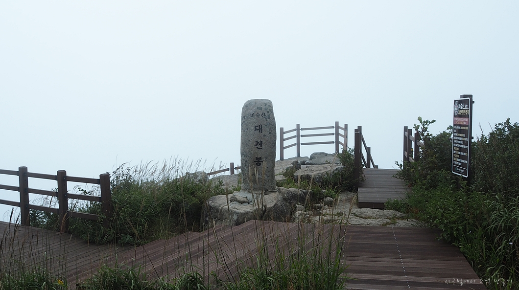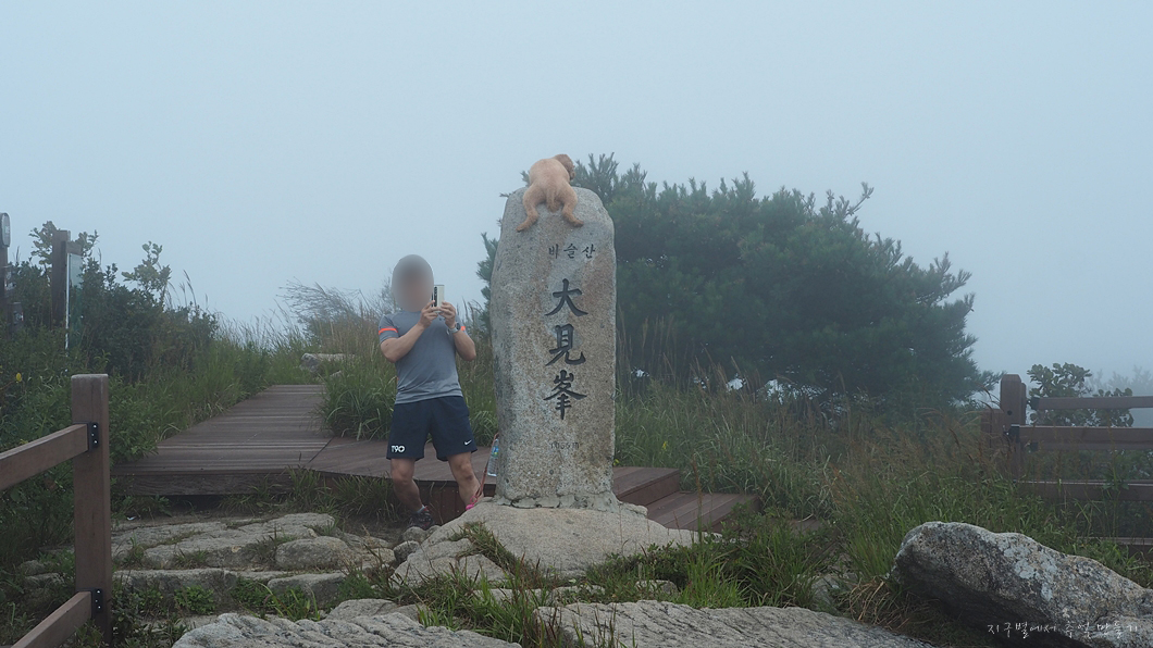 덕분에 30도가 넘는 무더위에 낑낑 오른 정상에서는 서늘한 바람에 추워서 바람막이를 겹쳐입어야 했답니다.