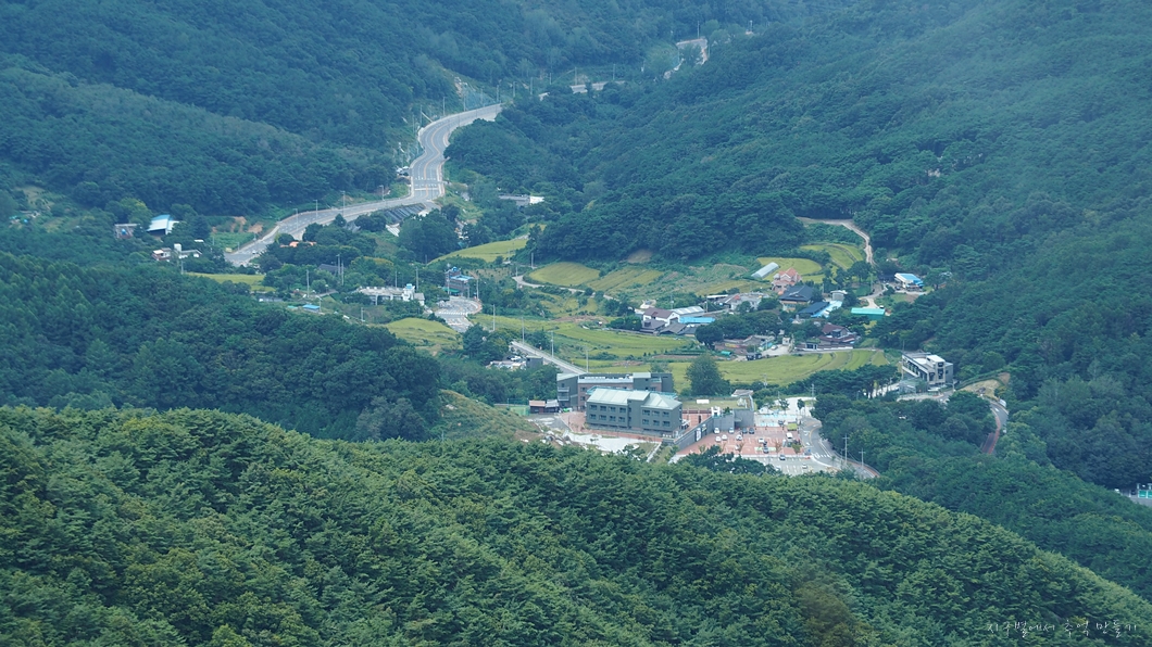 자연휴양림 방향으로 아젤리아호텔이 내려다보이네요.