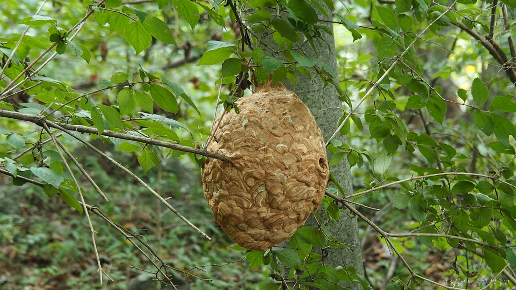 등산로와 멀지 않은 곳에 안 보이던 말벌집이 하나 생겨져 있네요.