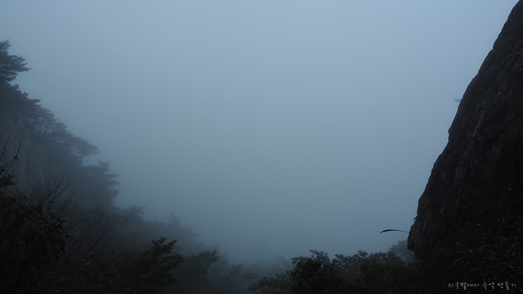아래쪽으로는 간간 안개구름이 걷혀서 조망이 조금 트이기도 합니다.