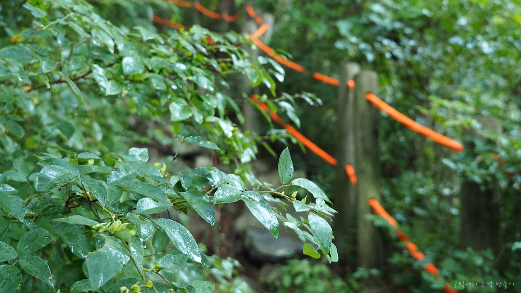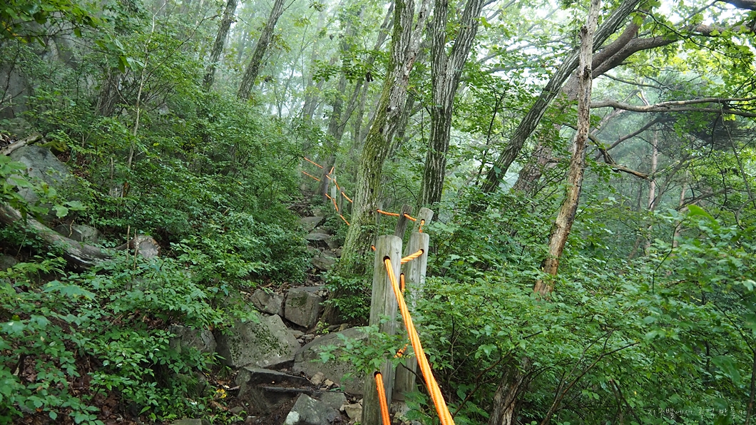 가파른 오르막 구간이 이어지는데 얼마 전에 이 구간에 형광색 로프를 설치했네요.