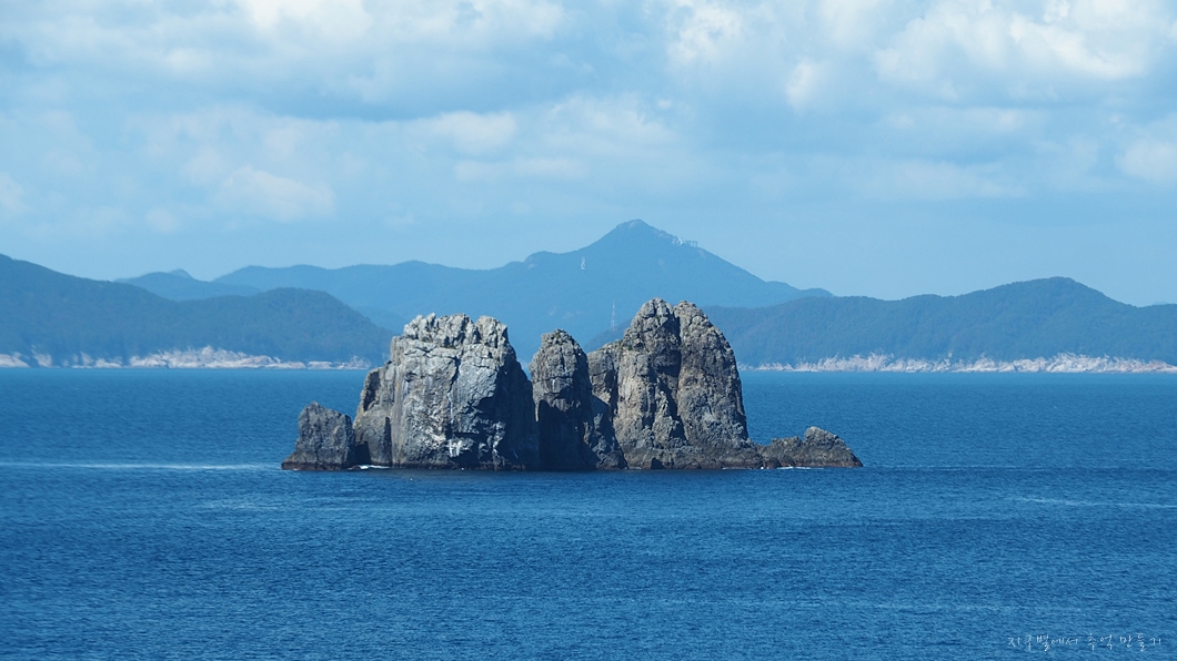 좌측의 매물도가 보이고 우측으로는 소매물도 바위들이 보이네요.