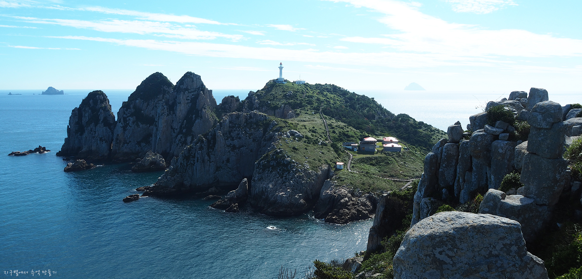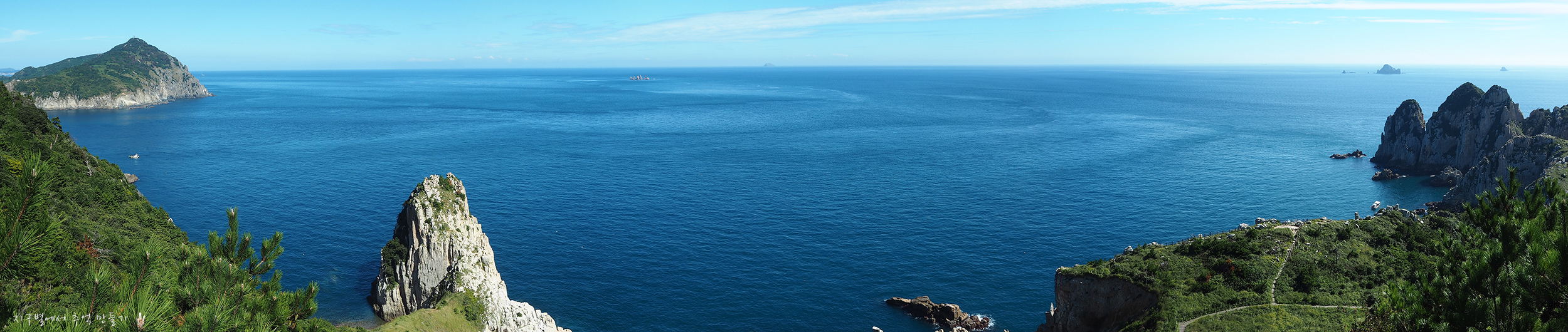 와이드 한 바다와 함께 파노라마 풍경으로 보는 등대섬.