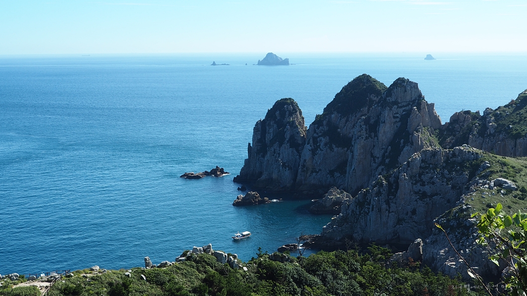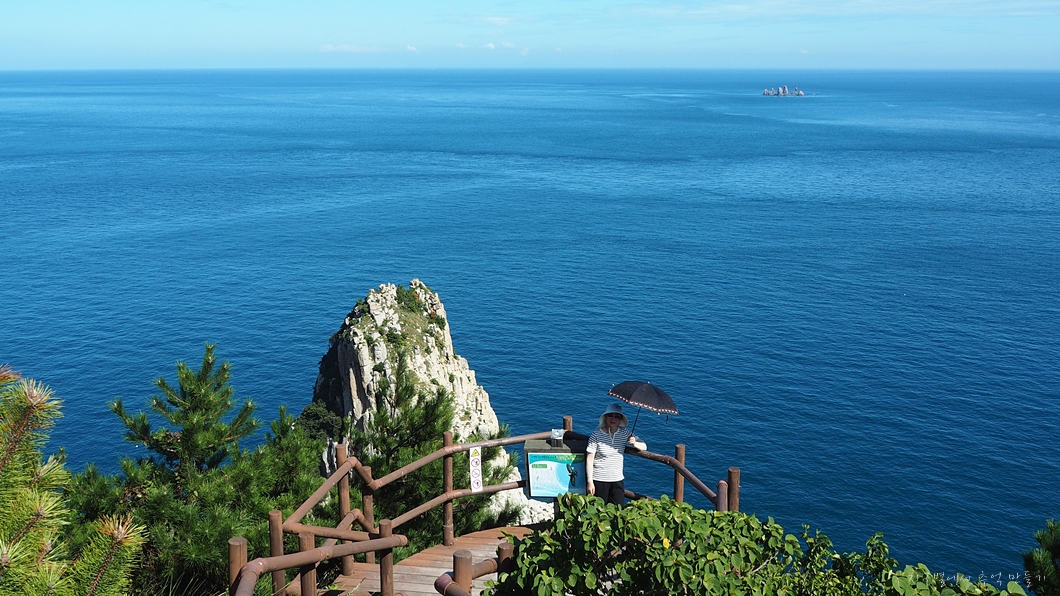 좌측으로는 멀리 연화도와 욕지도가 보이네요.