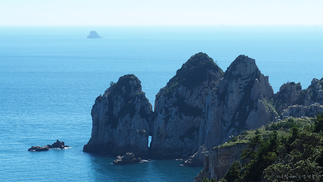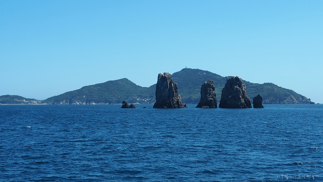 등대섬의 명물 삼 형제 바위를 당겨 봤네요.