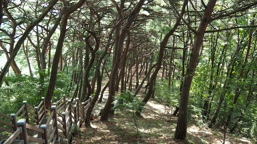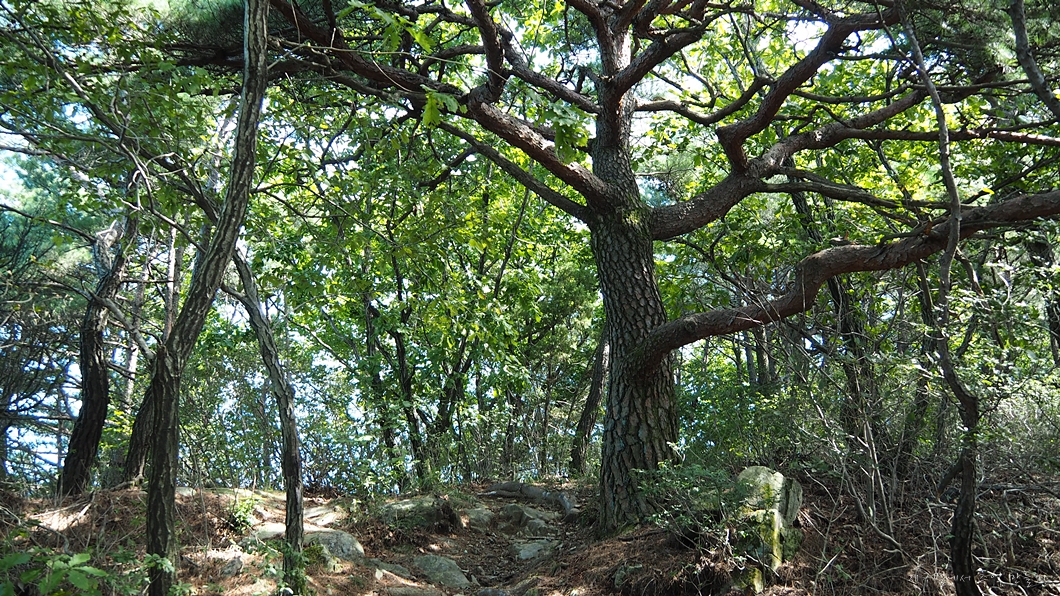 이곳 도리사 소나무 숲은 운치 있기로 이름나 있는데 잡목들과 작은 소나무들이 자라 올라서 산만해져 있습니다.