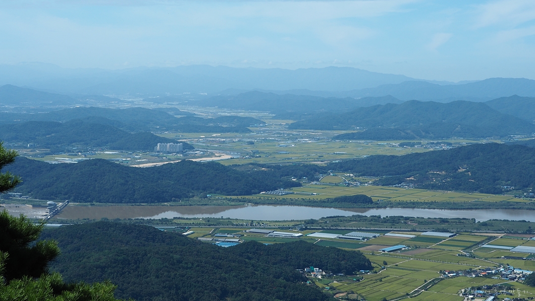북쪽으로 전날 다녀온 갑장산이 빤히 보이네요.(좌측 뒤로 높게 솟은 산)