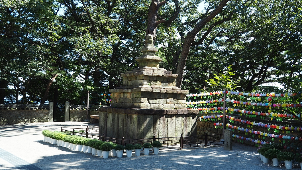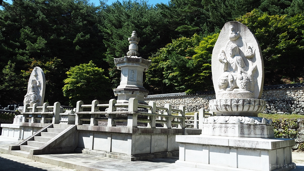 이전에는 양쪽에 석등만 있었는데 사리를 호위하는 불상이 새로 조성되어 있네요.