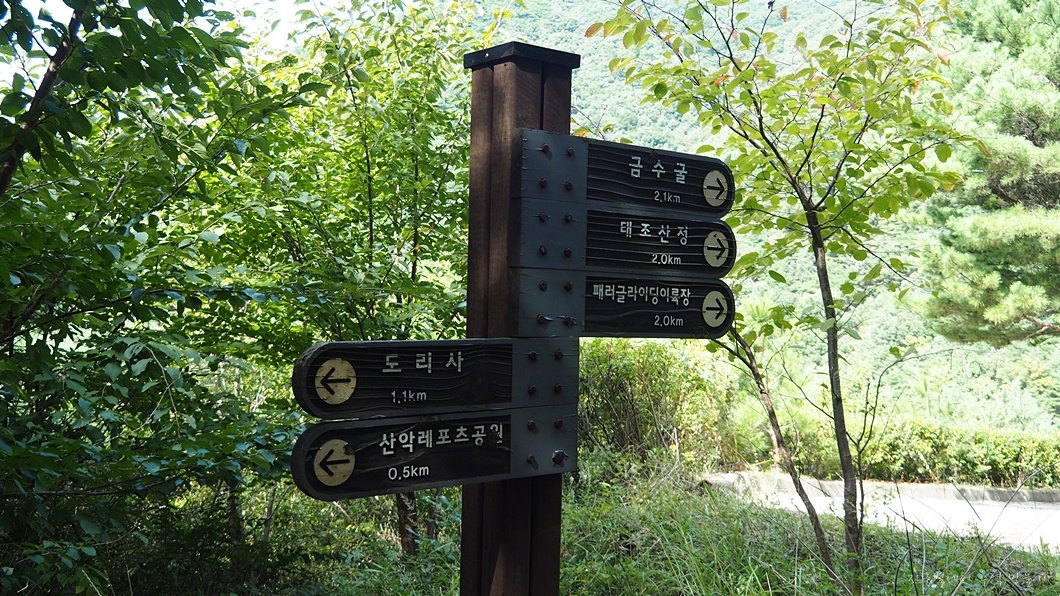 서대전망대 옆 안내판 말뚝에 레포츠공원까지 0.7km라고 되어 있습니다.