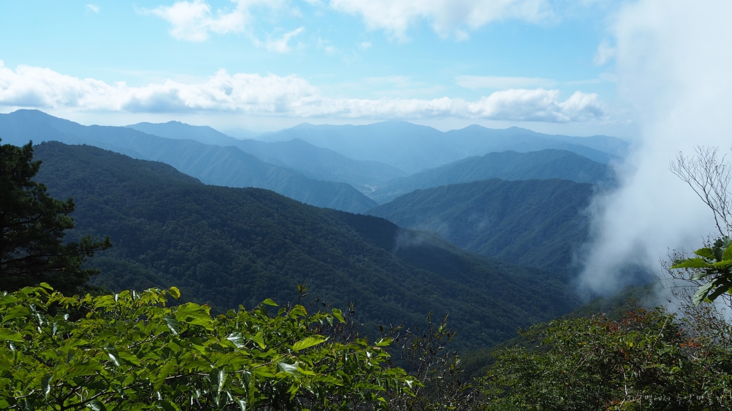 능선에서 조망이 트이는 곳은 몇 곳 되지 않는데 그곳에서 재수 좋으면 운무 없는 풍경을 잠시 만나게 되네요.