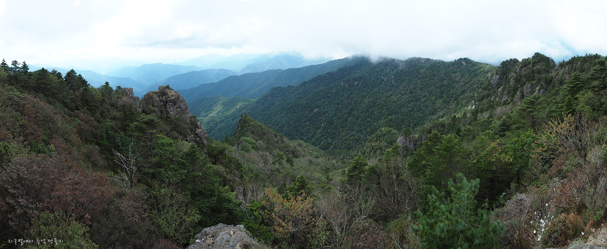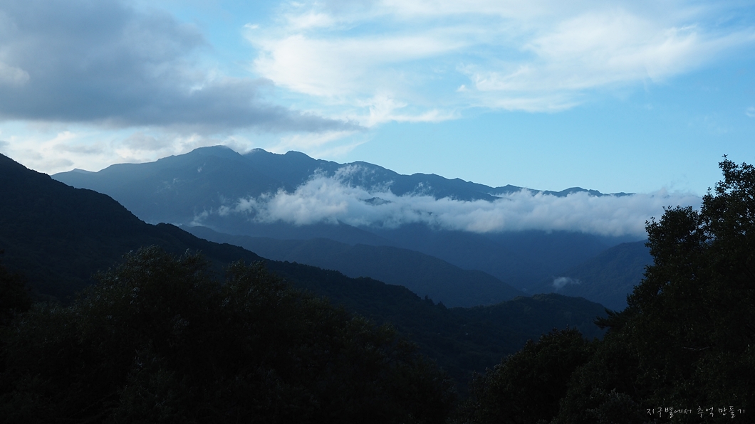 좌측은 가려서 보이지 않고 지리 남쪽 계곡과 능선들은 열려져 있습니다.