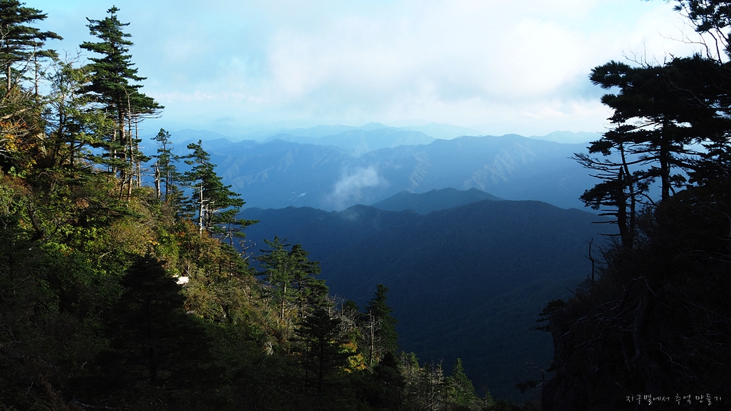 완전히 조망이 트이지는 않지만 지리 주능선 일부가 눈에 들어오네요.