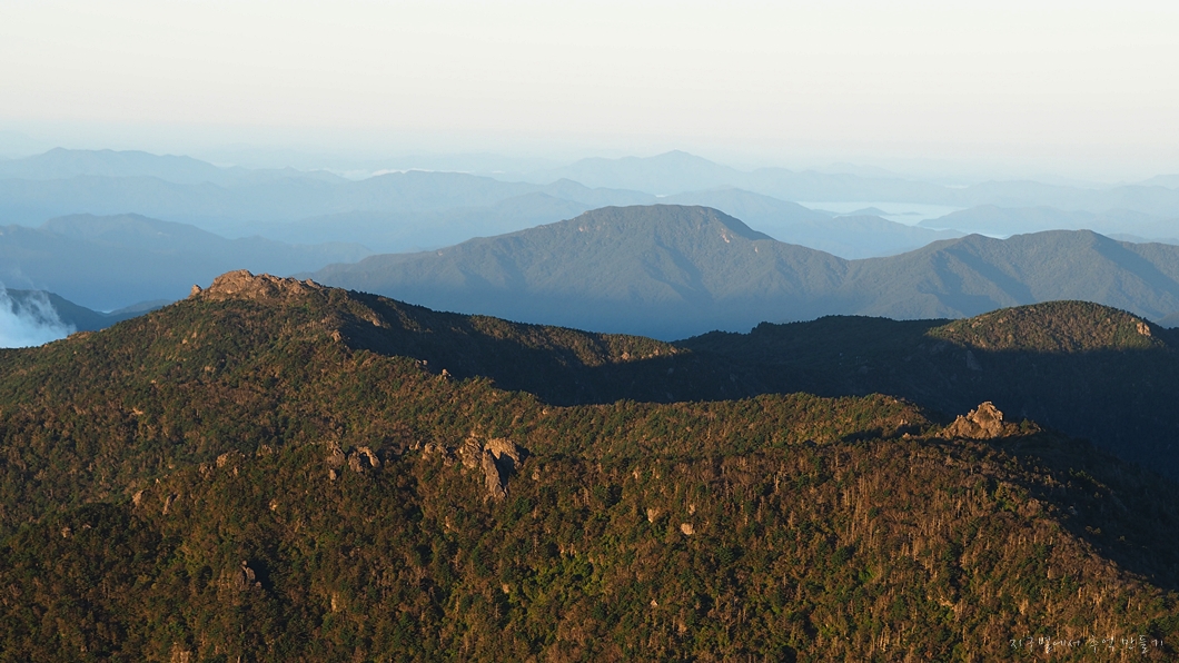 남쪽 조망은 실제로 보면 바다와 함께 섬들도 대략 보이는데 해가 비치는 방향이라 사진으로는 희미하네요.