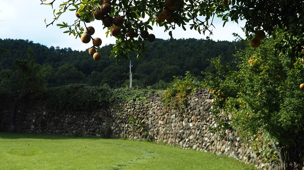 그나마 탱자 열매가 담벼락 위로 올라와 있네요.