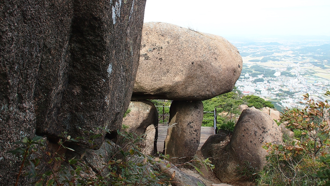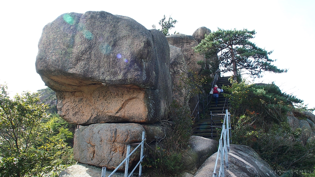 탁 차믄 넘어갈 것 같은 바위.