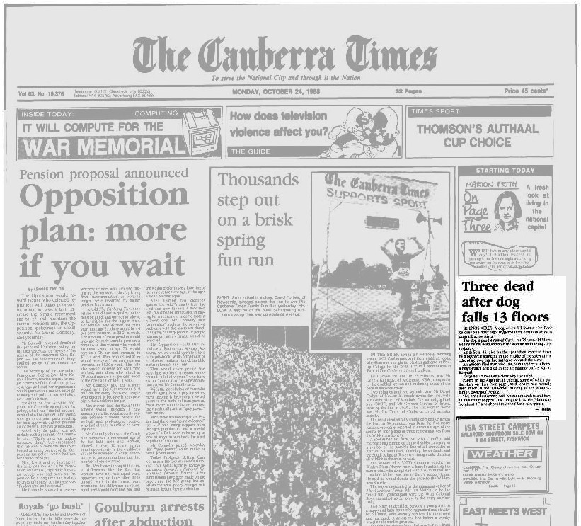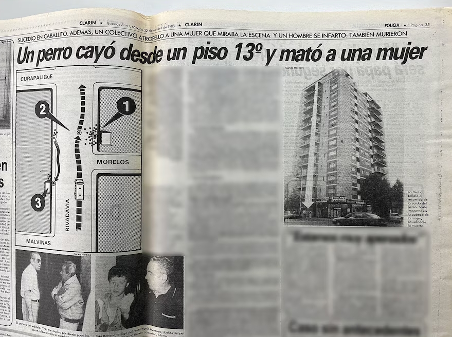 때마침 그 아래로 지나가던 75세의 마르타(Marta)라는 여성의 머리에 떨어져 그 자리에서 사망. 개도 죽었구요.